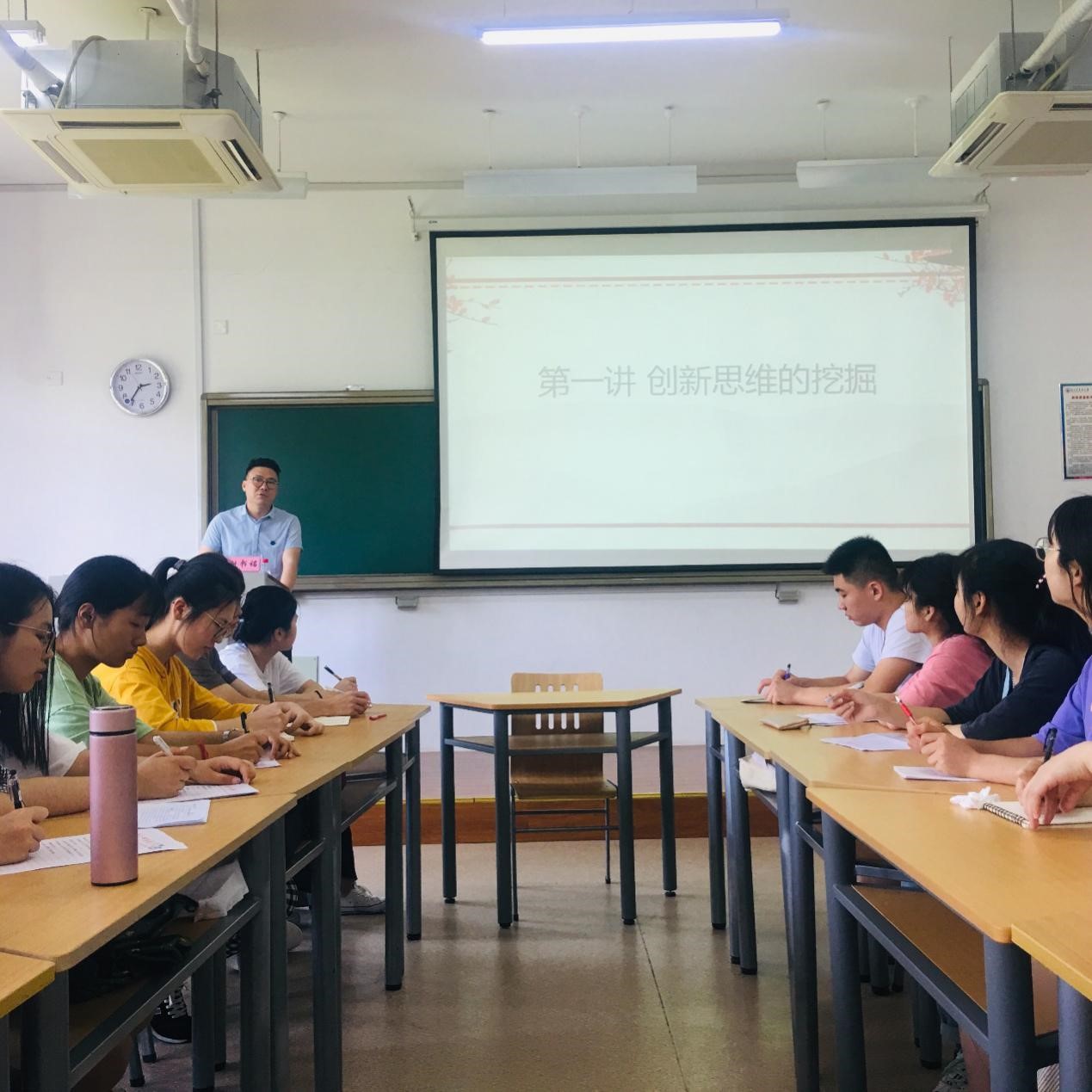 开班仪式后,学校创业指导中心主任谢书铭老师对同学们进行了理论培训第一讲,重点讲述了创新创业思维的发掘与“互联网+”大赛项目的十大来源。在创新创业思维发掘上,谢书铭老师就想象、创造、创新和创业四个方面深入讲解,为同学们创新创业计划的开展提供了引导。之后,谢老师给大家讲述了学生自发、科创融合、产教融合等十大“互联网+”项目来源,学员们纷纷表示受益匪浅。