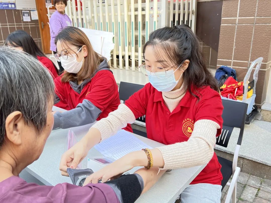作为六和社区“红五不打烊”便民服务活动的重要组成部分,支部同志们积极为六和社区的居民提供量血压、测血糖、耳穴压豆等志愿服务,同时,还耐心细致地告诉老人们如何做好秋冬季的健康养护。