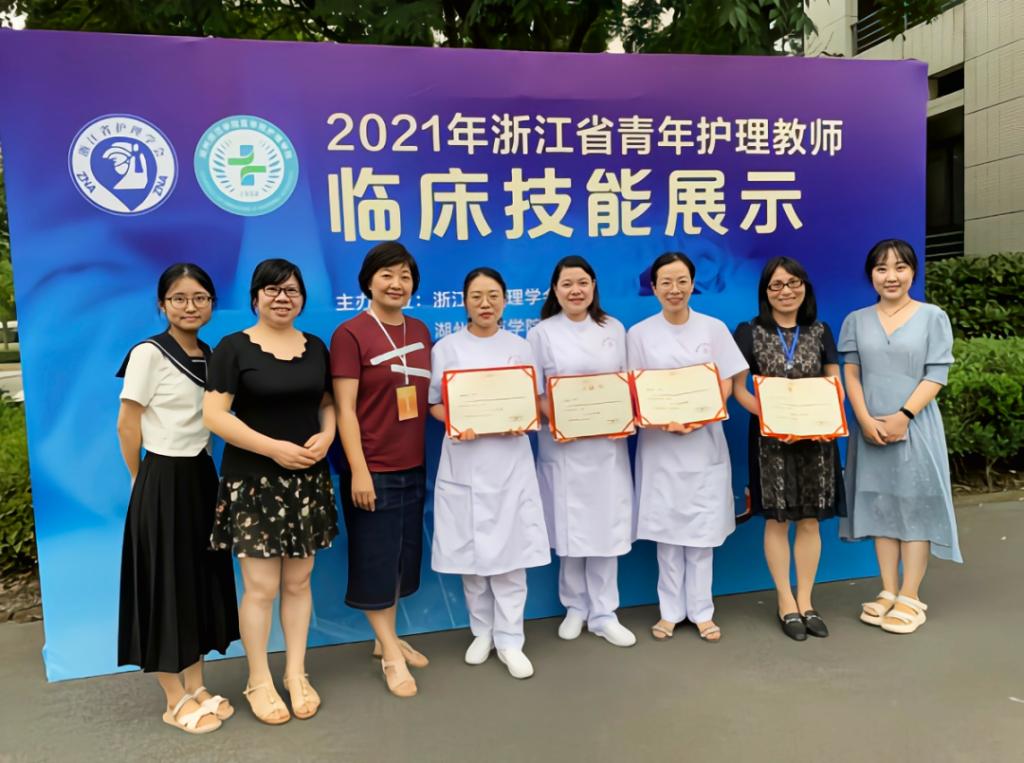7月16日,由浙江省护理学会教育专业委员会主办的2021年浙江省青年护理教师临床技能展示于湖州师范学院举行。bb贝博艾弗森官网青年教师屠乐微、梅彬彬、何维丽老师组成的参赛队(指导老师:蔡华娟、祝雪花)凭借出色的护理技能、优秀的带教能力、团队协作能力和精准的临场决策能力,出色地完成了比赛。荣获浙江省团体一等奖,并斩获个人一等奖两项、个人二等奖一项。成功晋级全国青年护理教师临床技能竞赛。