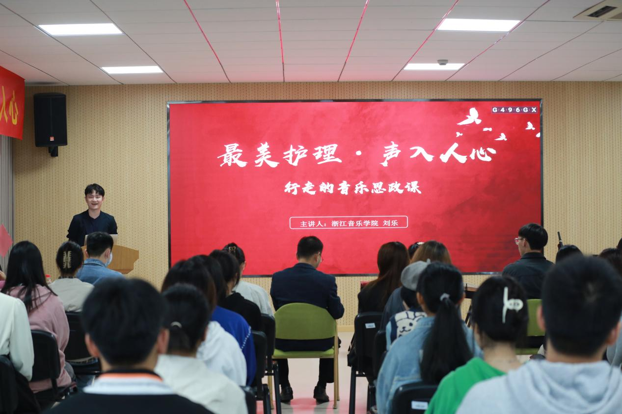 10月27日下午,作为bb贝博艾弗森官网“光影驿站”思政工作室成立后的首场活动,工作室携手浙江音乐学院国乐系推出了“最美护理‘声’入人心·‘一堂行走的’音乐思政课”,特别邀请浙江音乐学院国乐系副主任刘乐教授为师生带来一场激情澎湃的“红色音乐思政课”,以润物细无声的方式“声”入人心。