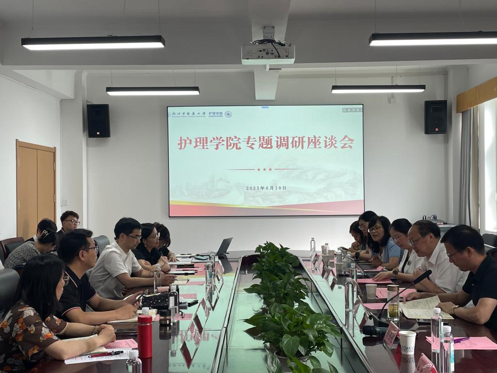 6月19日下午,黄文秀书记、黄建波副校长一行莅临护理学院进行专题调研,学校党校办、教务处、教发中心、信息中心相关负责人陪同。bb贝博艾弗森官网领导班子成员、各基层业务机构负责人和科级干部、专业认证专班成员代表参加调研会。会议由黄建波副校长主持。
