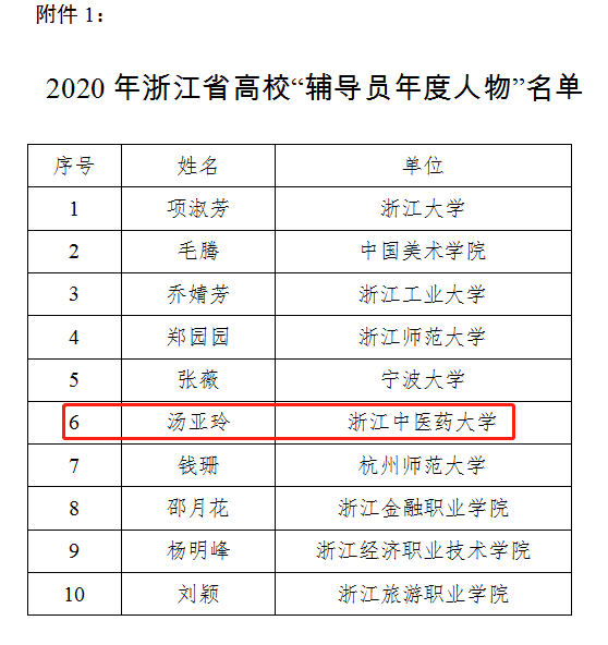 近日,2020年浙江省“高校辅导员年度人物”选树活动评选结果揭晓,bb贝博艾弗森官网学生工作办公室主任、辅导员汤亚玲从全省各大高校参评人员中脱颖而出,荣获2020年浙江省“高校辅导员年度人物”称号(全省仅10人)。